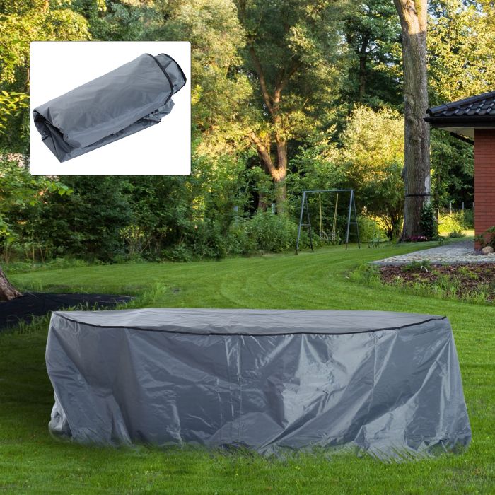 This 2 seater furniture cover made from a waterpfroof oxford cloth. It is ideal for protection your furniture from the weather when not in use. It measures 235x135x94cm which offers ample room for large furniture set. The bottom elastic cord ensures a tight and custom fit and secures itself when it is windy. This is a great solution and will make sure your furniture is ready to use and will last longer under cover.
