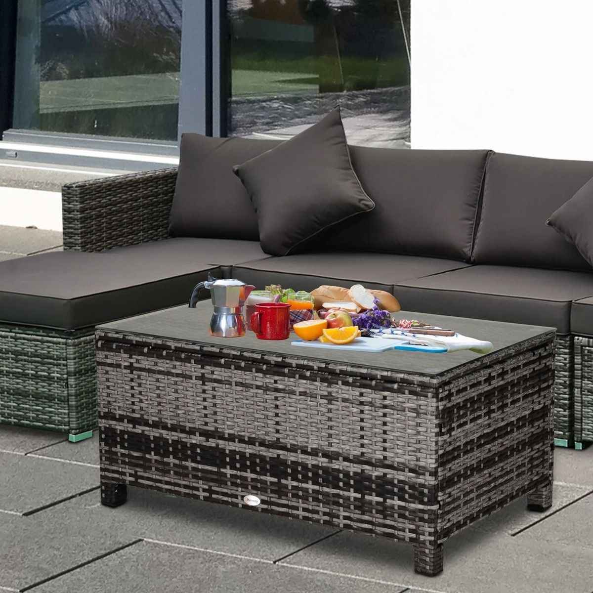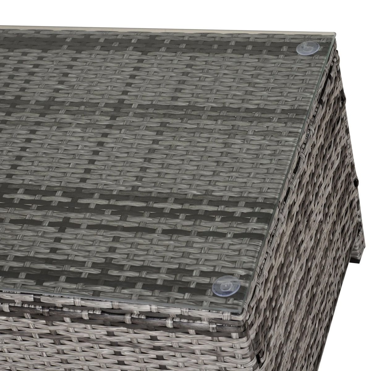PE Rattan Garden Coffee Table with Tempered Glass Top - Grey