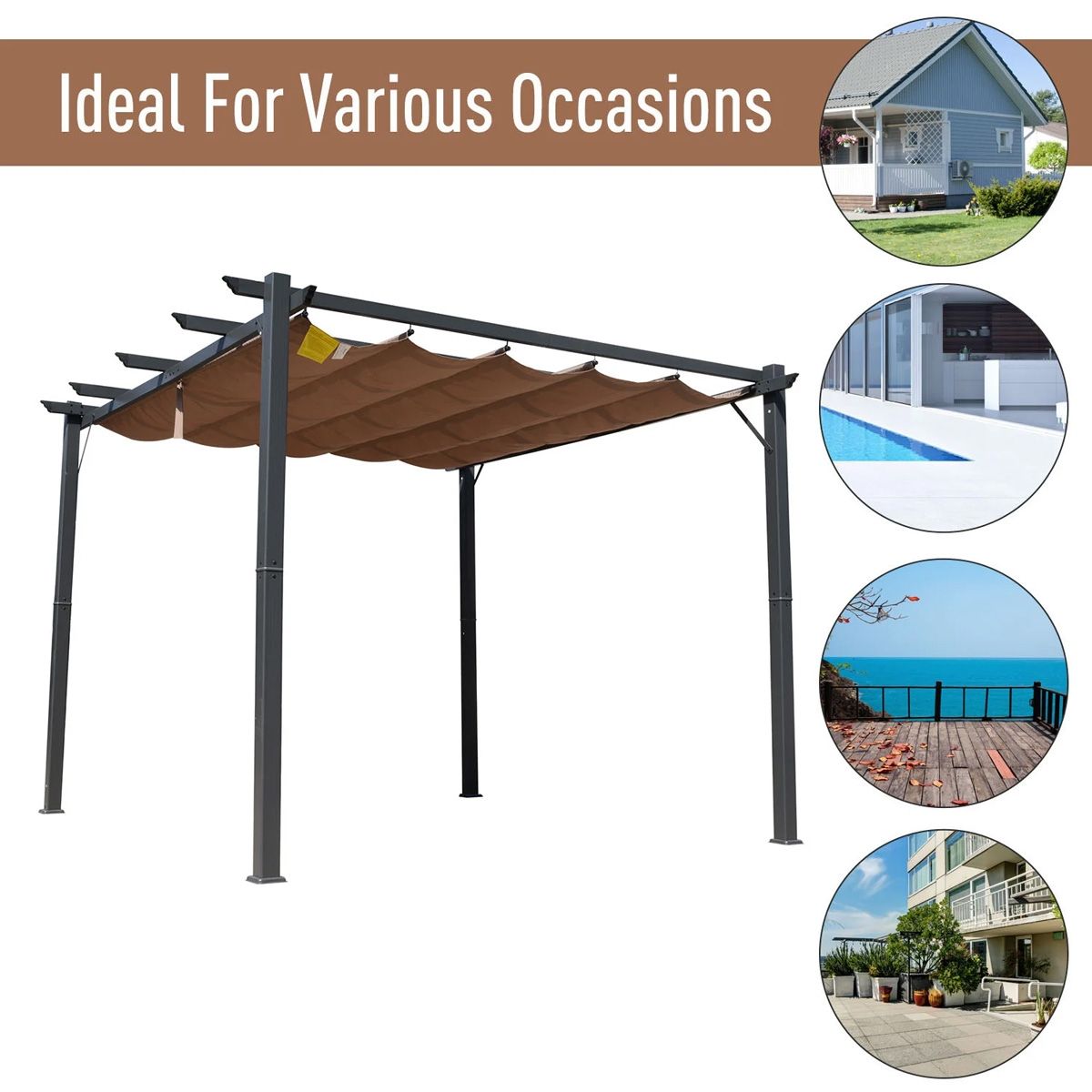 Create a shady and cool spot in the garden with this 3m x 3m premium pergola gazebo which will add a decorative touch to your patio or garden. A perfect accompaniment to any party, barbecue or social gathering, the adjustable canopy is crafted with brown polyester fabric, to keep guests sheltered. Supported with strong powder coated aluminium frame, this highly durable pergola gazebo will provide long lasting use.