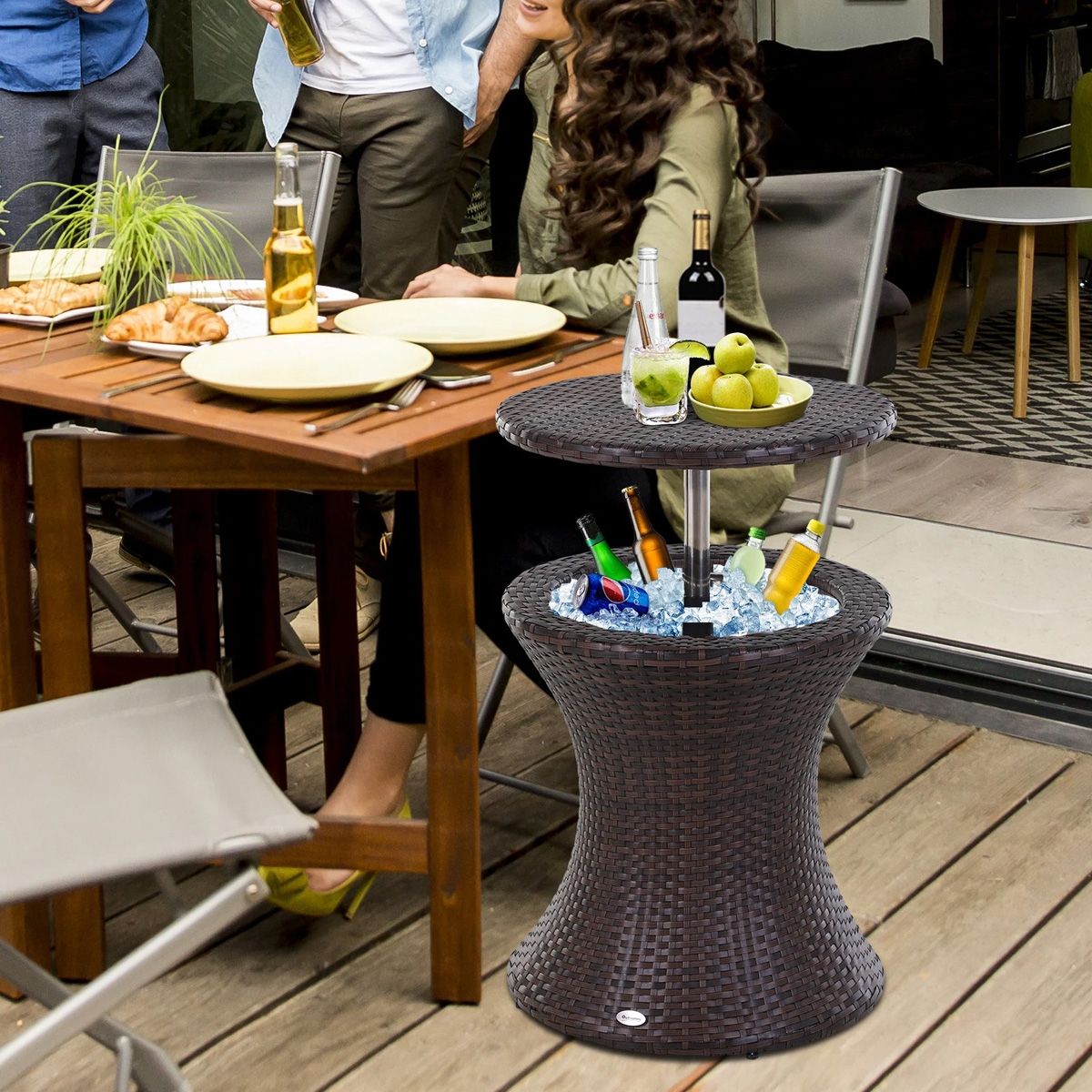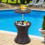 This rattan drinks cooler will be a great addition to your outdoor living experience, made from stainless steel frame with and covered with rattan. A unique feature is that the integrated table can be raised opening the drinks storage area, and can be used as a table. When not in use push the table down to close and store away. This is a very stylish and practical item to have and a great addition for when you have parties and guests around.