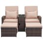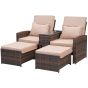 Rattan Reclining Companion Lounge Chair & Stools - Brown