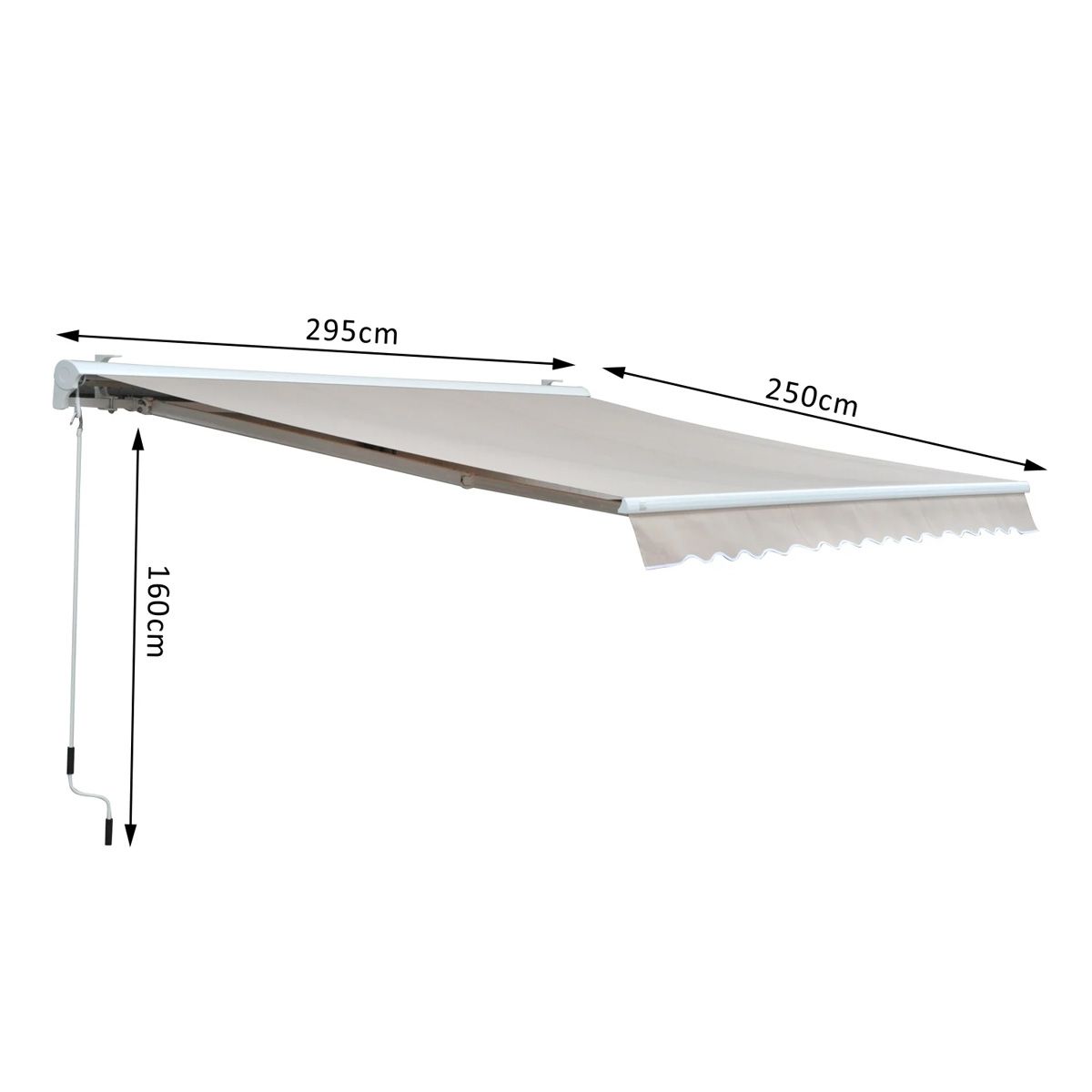 This 2.95L x 2.5m retactable awning is a great addition to your outdoor living space. The awning is electric and can be opened and closed using a remote, it can also be done manually if required using a 1.6m crank handle if required. The awning can be mounted on the wall and above entrances. It is designed to give you shade from direct sunlight and even light rain. Made from a polyester cloth with PU coating on a metal frame, it is an ideal system to have. The awning uses a half cassette system ensuring protection of the cloth when closed.