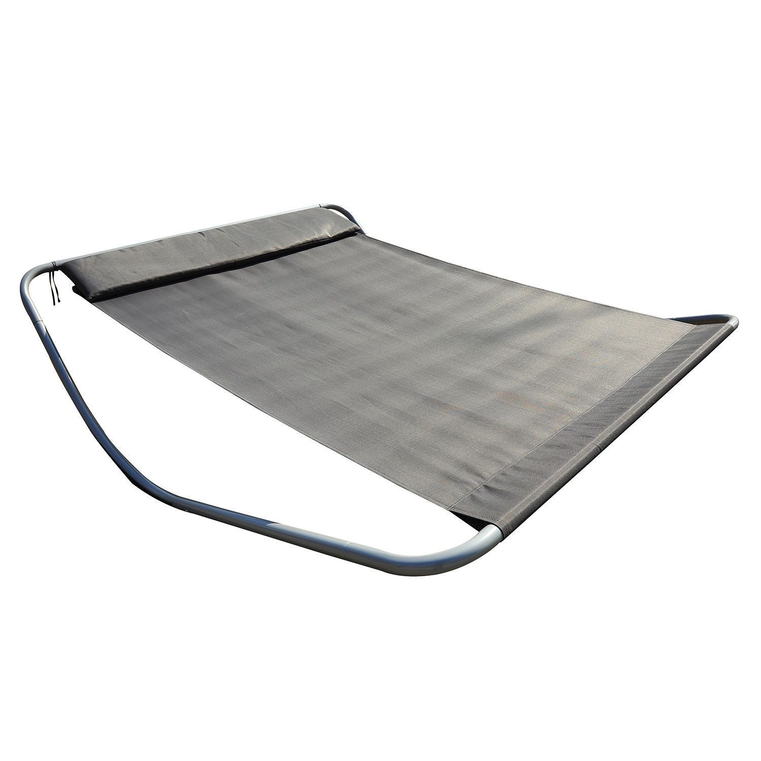 This outdoor double rocking hammock swing in grey is made from durable steel & textilene fabric. The rocking swing sun bed can convert into a double bed, perfect for guests. Constructed from a sturdy steel metal frame to resist the elements, includes a pillow to rest your head.