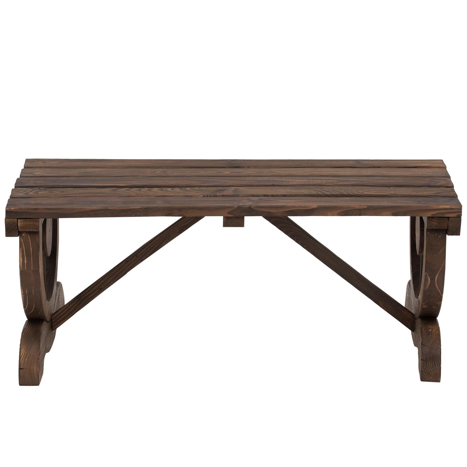 An elegant rustic style bench makes patio, garden, or other outdoor area more beatiful and charming. Made of high-quality fir wood, this bench is sturdy yet comfortable enough for up to 2 people to relax on for hours in the sun or the shade. Comparing with others, wheel bench legs design helps your garden, patio makes your garden stand out!