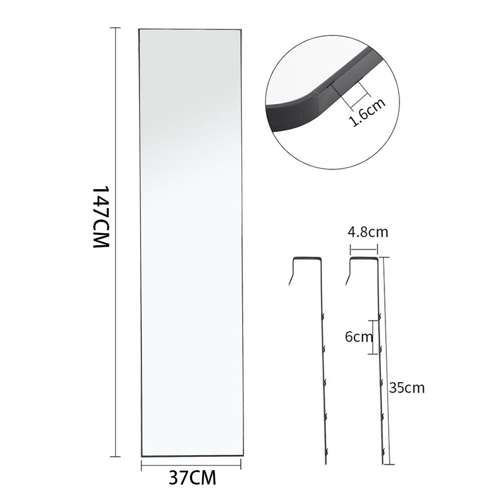 Elevate your space with 's sleek full-length mirror. Its chic black frame exudes elegance through simplicity. Versatile mounting options cater to any space: hang it on your door with the metal hook, mount it on the wall using stickers, or effortlessly lean it against any surface. Beauty meets functionality effortlessly.