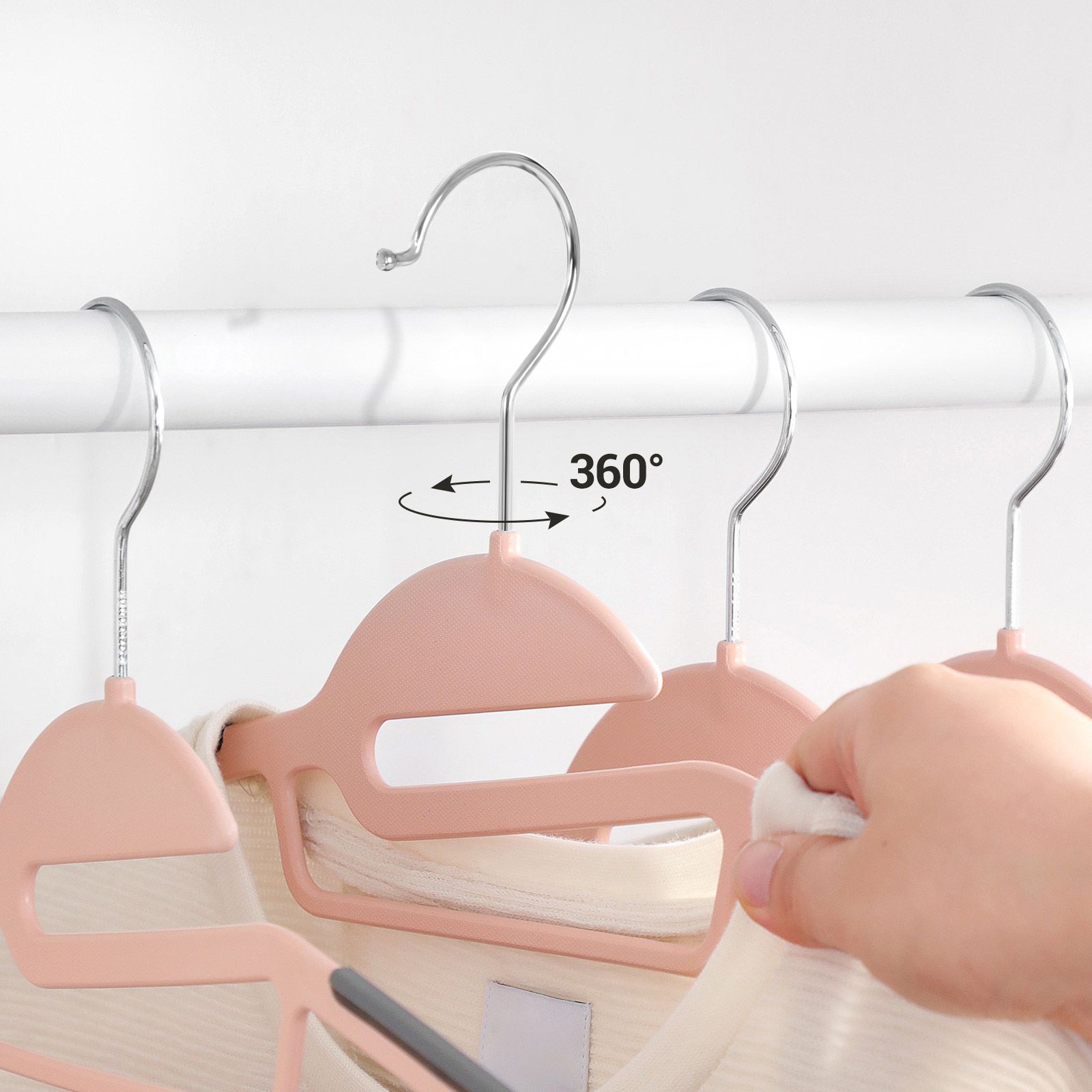 Flexible Coat Hangers for All Your Clothes: The hanger has 2 small hooks for strappy tops, bras, skirts, blouses, and trousers with loops. In addition, the hanger offers space for trousers to hang on the bottom bar and a smaller centre bar also offers space for scarves and ties.Non-Slip and Slim Design: Jackets, vests, and trousers can be hung securely due to a rubber coating on the shoulder area and the centre bar. The hangers are only 0.5 cm thick and take up so little space in the wardrobe. However, they are robust and do not break easily withstanding heavy items of clothing.More Space in the Wardrobe: With these hangers, you can hang jackets and trousers together on one hanger. An entire outfit can be combined on one coat hanger—saving space and time in the morning.