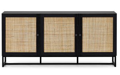 Fusing modern construction with retro design elements, the Padstow collection will exquisitely complement any styled home. The natural rattan fronts and industrial-style base collaborate perfectly to leave a warm yet chic aesthetic in your home. This range includes a bedside, 3 drawer chest, 6 drawer chest, wardrobe, coffee table, TV unit, sideboard, and tall bookcase. Also available in an oak finish.