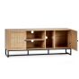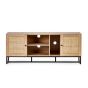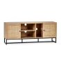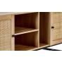 Fusing modern construction with retro design elements, the Padstow collection will exquisitely complement any styled home. The natural rattan fronts and industrial-style base collaborate perfectly to leave a warm yet chic aesthetic in your home. This range includes a bedside, 3 drawer chest, 6 drawer chest, wardrobe, coffee table, TV unit, sideboard, and tall bookcase. Also available in a black finish.