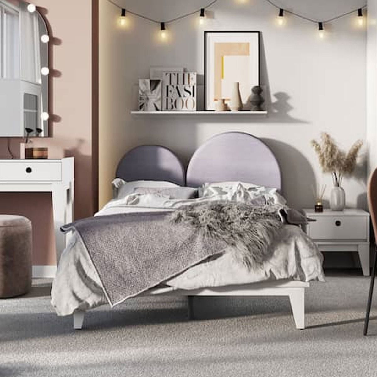 Elevate your bedroom with the Palazzo Small Double Bed Frame in White—a stunning and chic centerpiece that redefines minimalist elegance. This bed stands out with its high-quality craftsmanship and features a fancy, upholstered headboard, adding a touch of luxury to your sleeping sanctuary. The universal white matte finish ensures seamless integration into any modern or contemporary decor. Crafted from durable 16mm laminated board, this bed guarantees unparalleled strength, stability, and resistance to abrasion.
