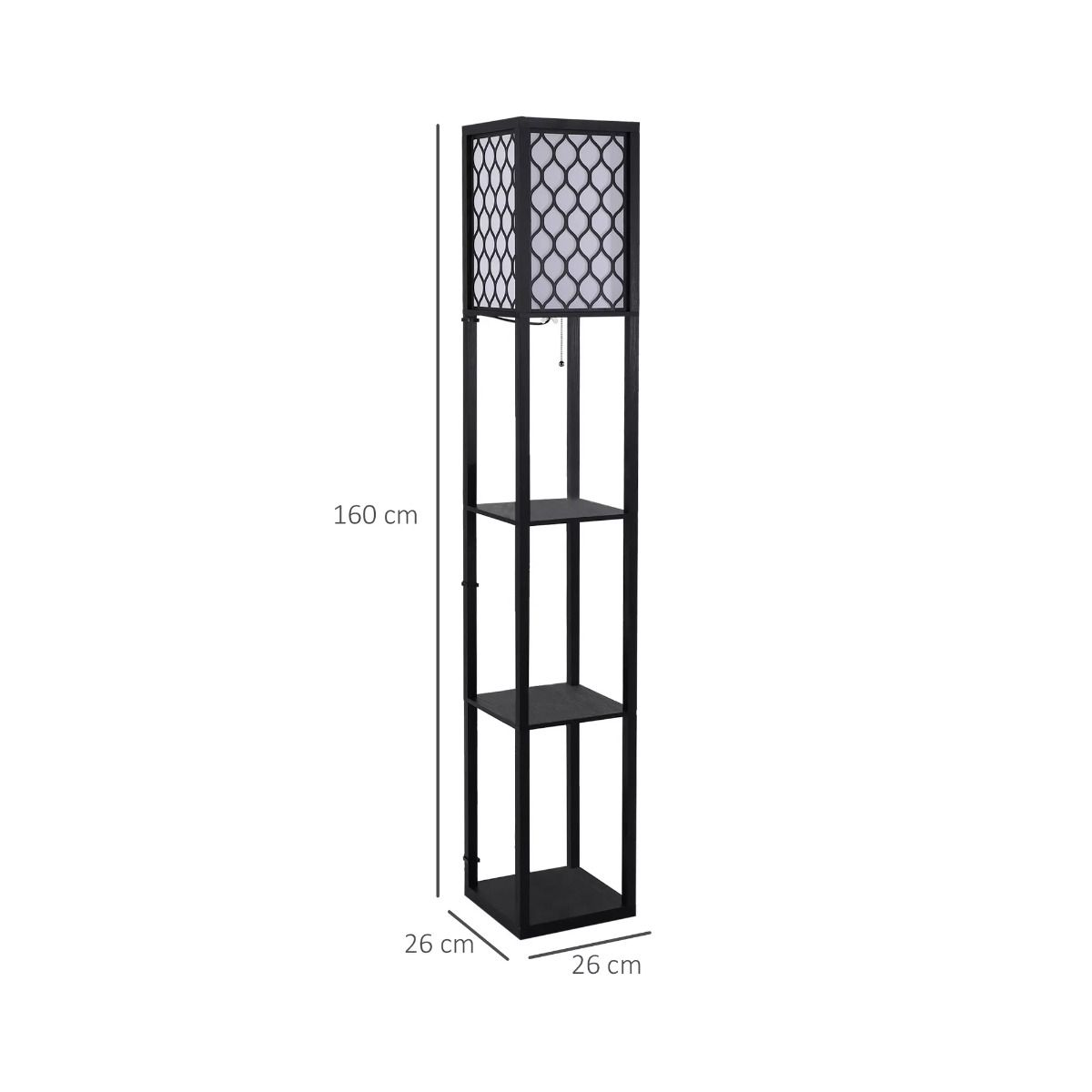 PALLORIN Floor Lamp Modern Standing Light with 3 Shelves and Fabric Shade - Black