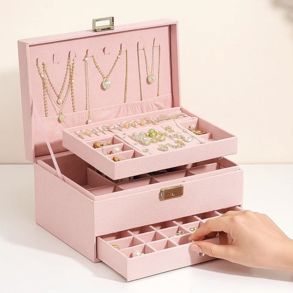 PALLORIN Jewellery Box 3-Layer Organiser Storage Case - Pink