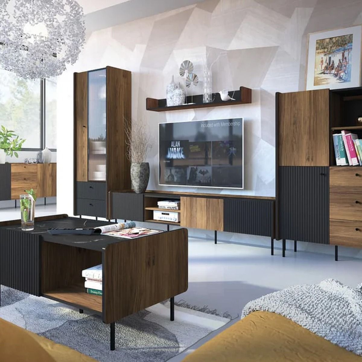 The PANDORA TV Cabinet is a stylish and functional storage solution for TVs and media devices. Featuring three hinged doors and two open compartments, it's perfect for living rooms and entertainment areas.