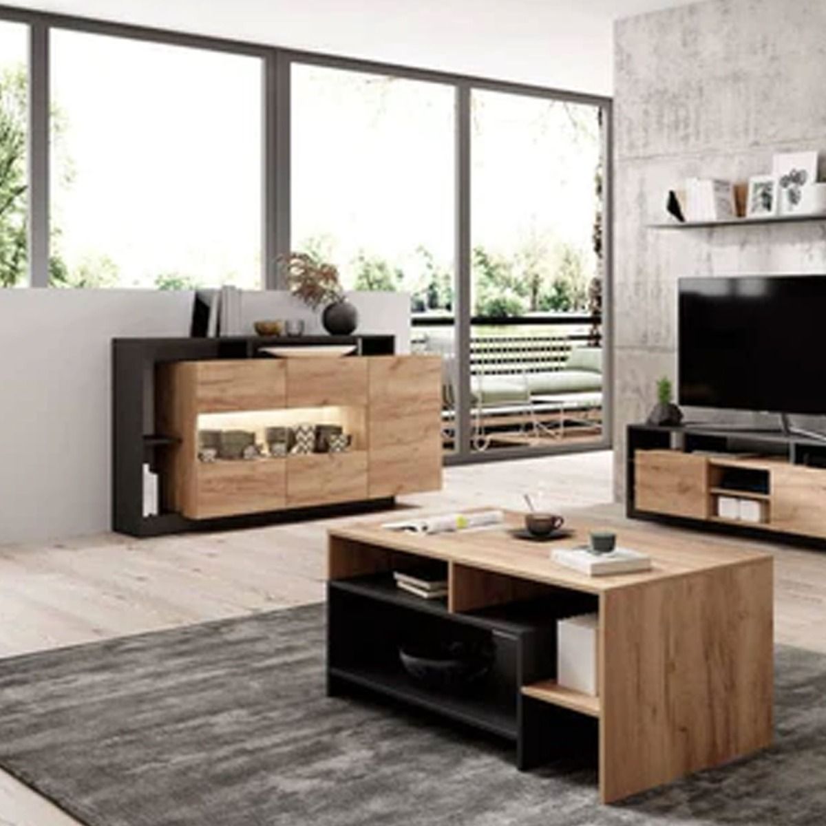 Introducing the Pantheon Haven Sideboard in Oak and Black – a perfect fusion of style and functionality for your living space. With three hinged doors, including two partially glassed doors, this sideboard is a sophisticated storage solution that seamlessly blends modern design with practicality. The four shelves and two open compartments provide versatile storage for your essentials and decorative items. Crafted with ABS edging and high-quality 16mm laminated board, this sideboard ensures durability and a lasting finish. Assemble it for a personalized touch, bringing both organization and contemporary elegance to your home.