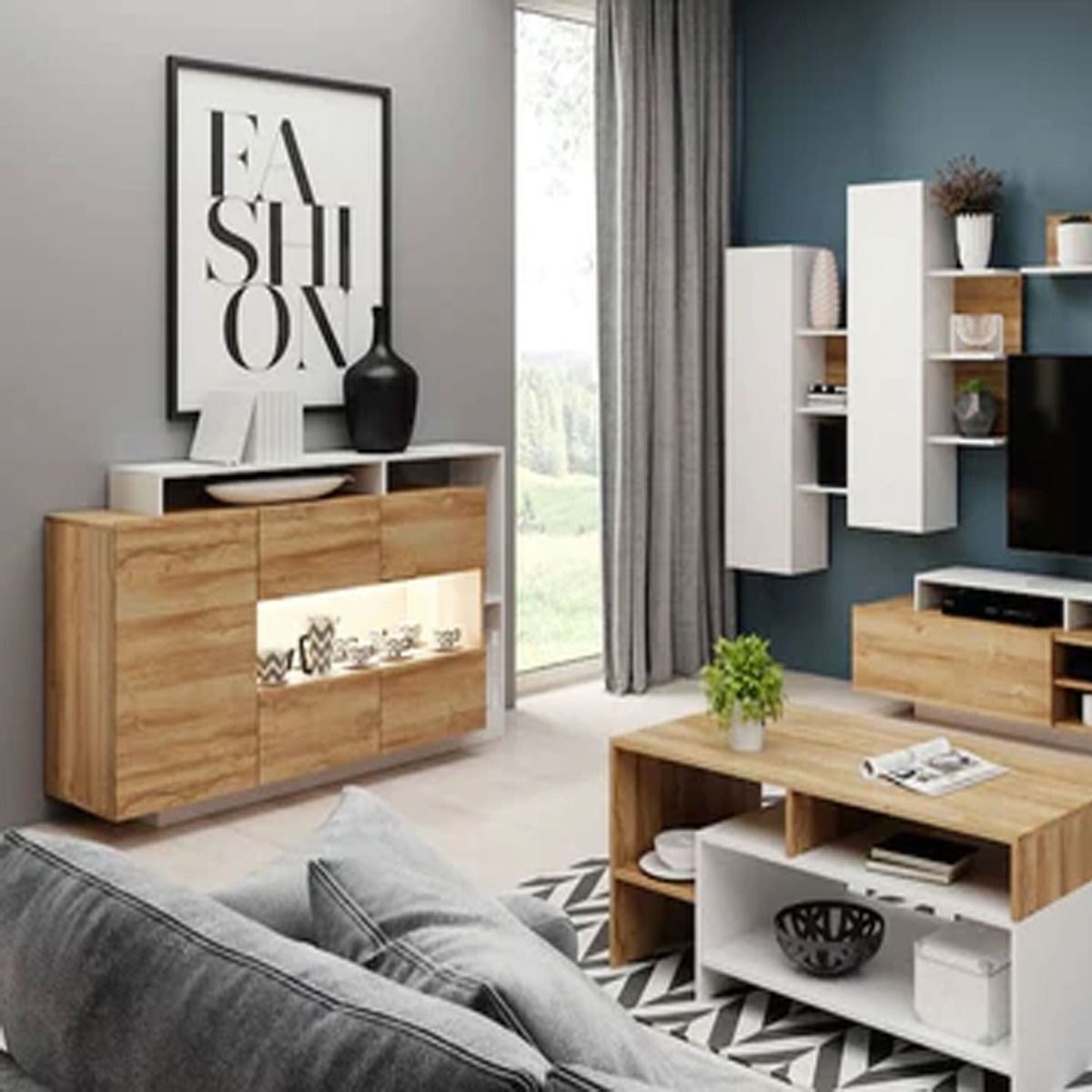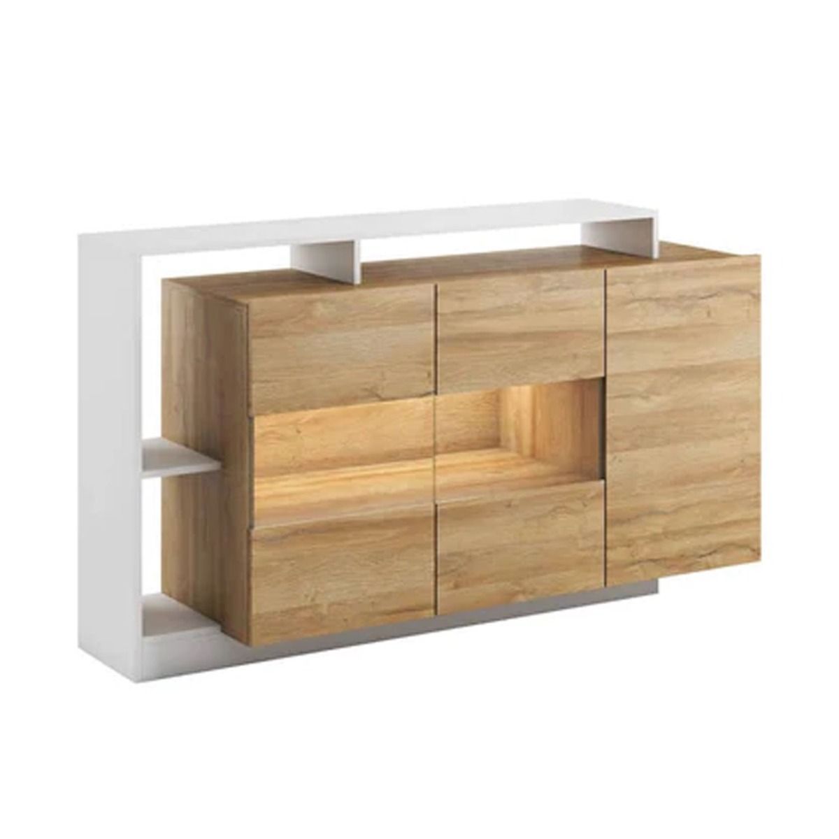 Introducing the Pantheon Haven Sideboard in Oak and White – a perfect fusion of style and functionality for your living space. With three hinged doors, including two partially glassed doors, this sideboard is a sophisticated storage solution that seamlessly blends modern design with practicality. The four shelves and two open compartments provide versatile storage for your essentials and decorative items. Crafted with ABS edging and high-quality 16mm laminated board, this sideboard ensures durability and a lasting finish. Assemble it for a personalized touch, bringing both organization and contemporary elegance to your home.