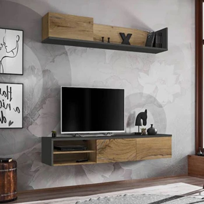 - Hanging TV cabinet and shelf for a modern look