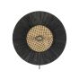 Captivating wall lamp featuring a round paper, textured shade with a captivating rattan braid accent. Its design exudes a harmonious blend of natural elements and contemporary aesthetics. The exposed bulb adds a touch of vintage charm while emitting a soft, ambient lighting in any space. This lamp serves as both a functional lighting solution and a decorative piece for any living area. Details: Color: Black, Beige. Main material: Paper. Additional material: Rattan, Iron. Weight: 1 Assembly: Requires Installation