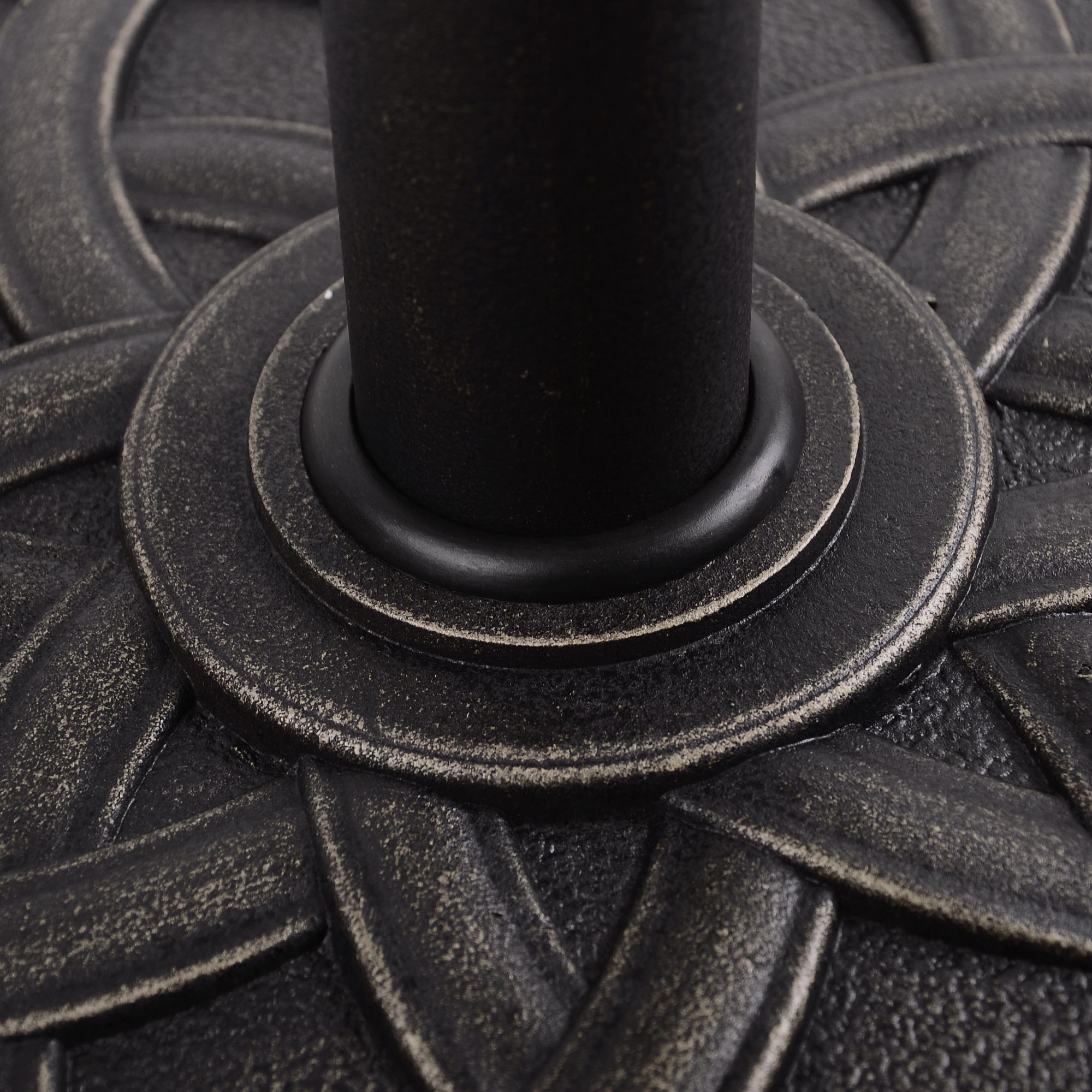 This brand circular umbrella base stand, offers a decorative, high-end touch to your outdoor living area while holding your umbrella in place. With a suttle finish, the base is designed to add charm and elegance to most backyard patio space. Made from resin, steel and plastic, this base is rust-resistant and made to last for years.
