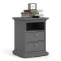 Bedside Table - PARIS 2 Drawer Nightstand Matt Grey 43.6cm