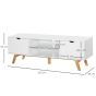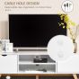 Bring minimal elegance into your home for maximum impact, thanks to this TV stand from. Using a blend of particle board and MDF for the frame, it is crafted into a space-utilising design, featuring two end cabinets and two middle compartments, providing plenty of open and discreet room for media unit and electronics. A rubber wood base provides balance and stability, and it is finished with a spacious worktop and cable holes on the back.