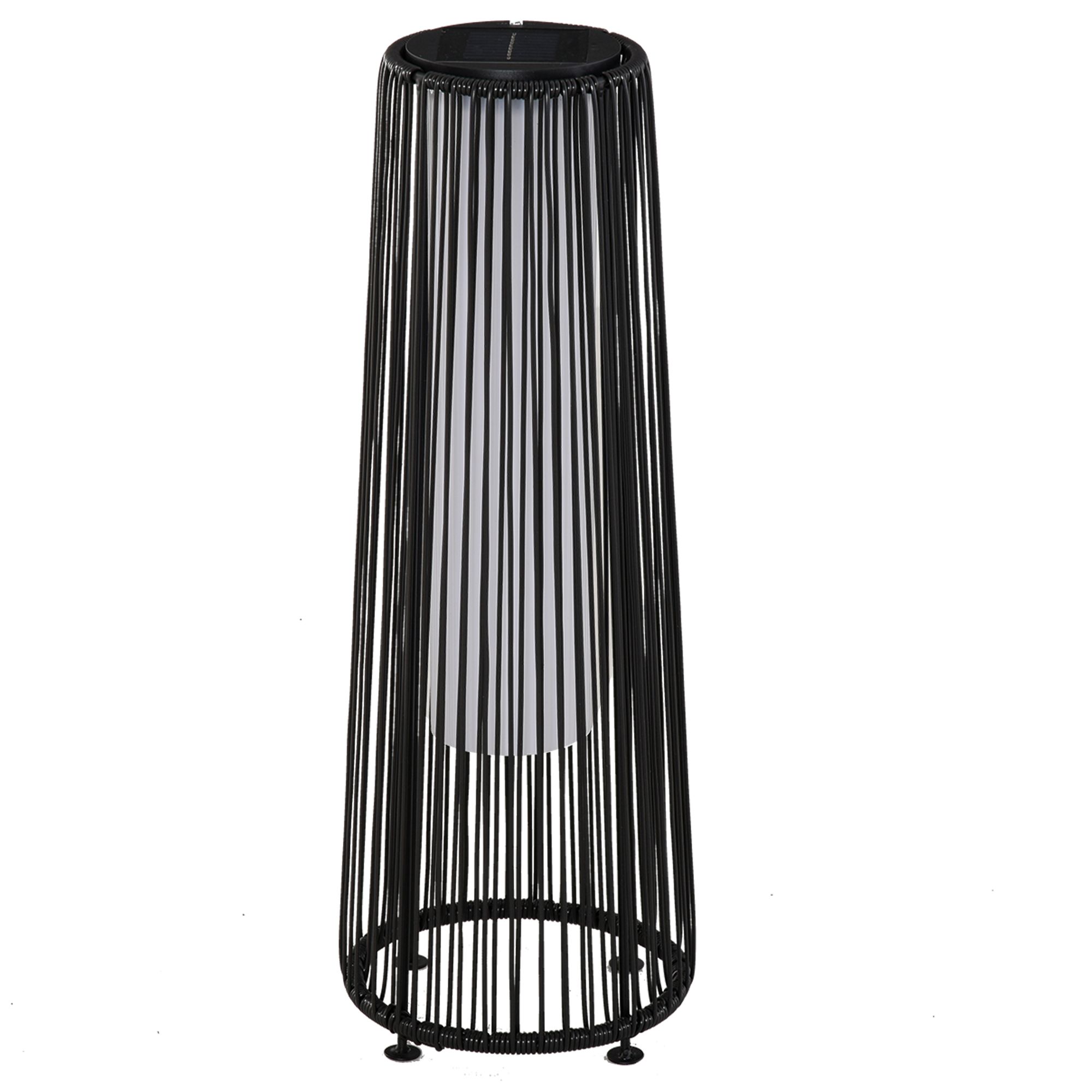 Wonderful weaves displayed in a new way - this solar powered lamp from is a sophisticated touch for your outdoors this season. The structure made from strong powder coated steel, it's crafted into a graduating cylinder shade for a cool look which holds its balance. The stringed design is wrapped in PE wicker for a garden-appropriate look, which also protects the structure. Inside there are lights to illuminate your space at night, with a maximum run time of eight hours. It automatically turns on and off and charges in the daylight, meaning no electricity connection is required. Beautiful nighttime ambience starts here.