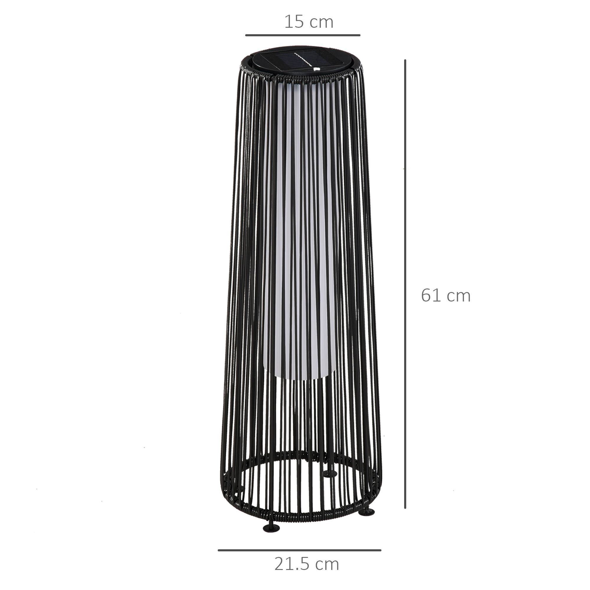 - DIMENSIONS: 61H x ?21.5cm. Top: ?15cm. Solar light panel: 8.5L x 8.5Wcm.