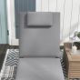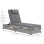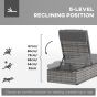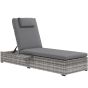 Patio PE Rattan Lounger w/ Cushion, 5-Level Reclining Wicker Rattan Sun Lounger w/ Tea Tray, for Poolside, 120kg Weight Capacity, Grey