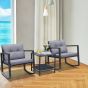 Patio Set - 3 Pieces Outdoor Rocking Bistro Set PE Rattan with Cushions - Grey