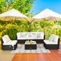 Patio Set - 6 Piece Outdoor Rattan Sofa Set with Soft Seat and Back Cushions - White