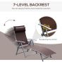 Patio Sun Lounger Garden Texteline Foldable Reclining Chair w/ Pillow Outdoor Adjustable Recliner (Brown)