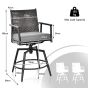 Patio Swivel Bar Stools Set of 2 with PE Rattan Back and Metal Frame-Black