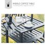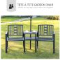 Patio Tete-a-tete Chair 2 Seat Bench Middle Coffee Table w/ Umbrella Hole for Outdoors Decorative Slatted Design Steel Frame Black
