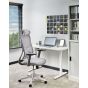 This executive office chair is a multifunctional choice for any workspace. Upholstered in breathable mesh fabric for improved airflow, it features an adjustable headrest, 3-position tilting backrest and rotatable armrests that can be tilted sideways or front-to-back. The height adjustment, paired with the swivel base, ensures easy movement and seating comfort suited for your needs.