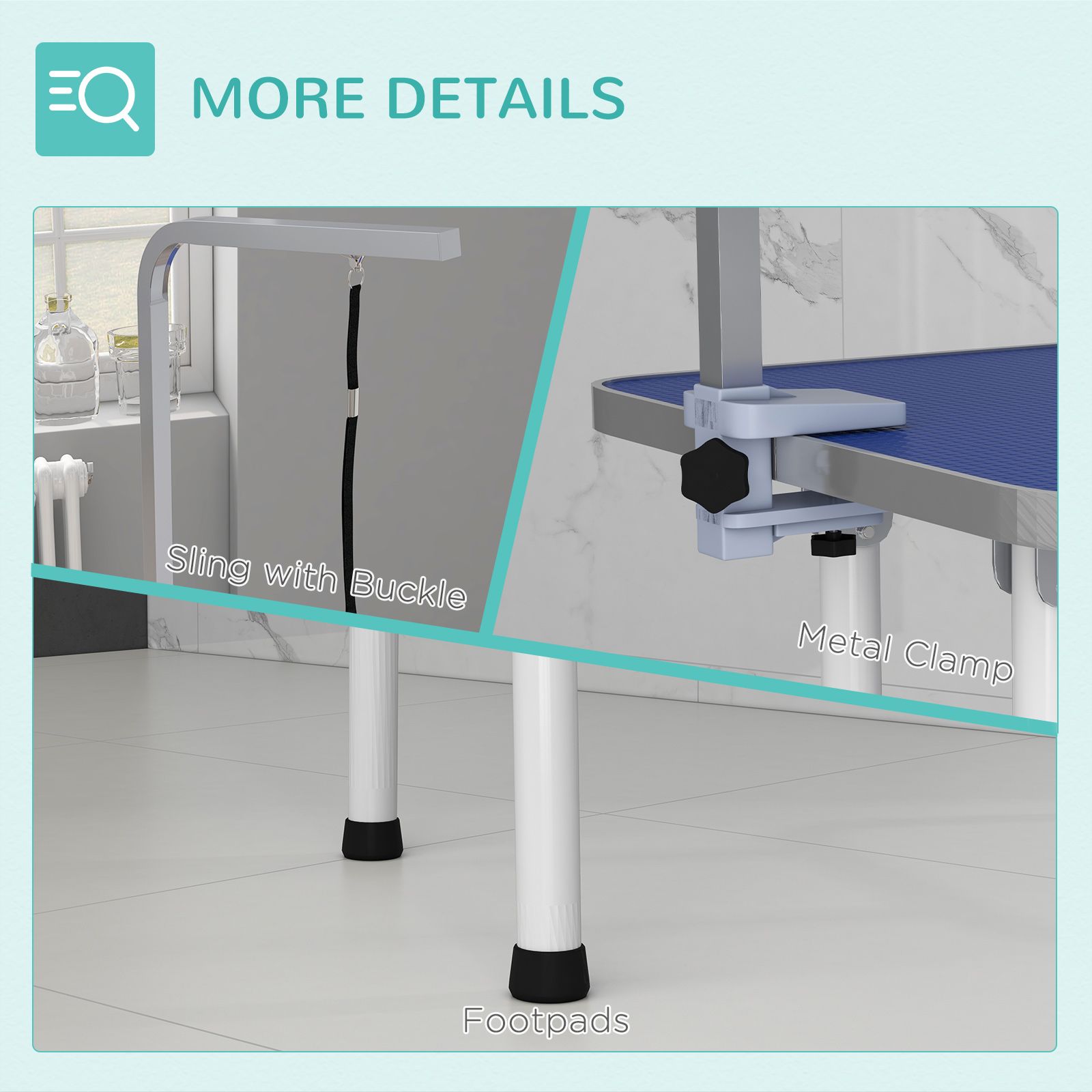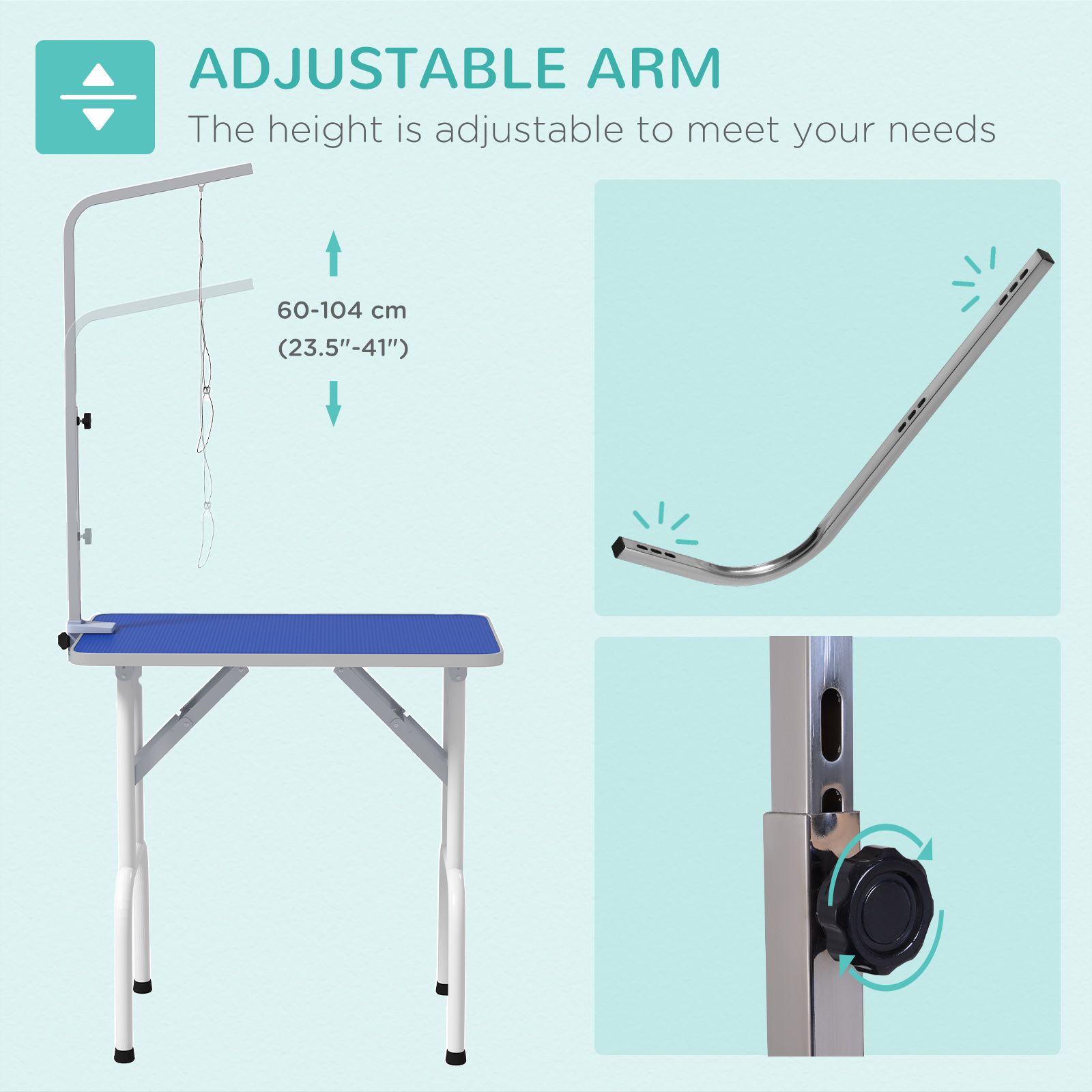 PAWSTER 32" Foldable Dog Grooming Table Pet Drying Beauty Table Adjustable Fixed Arm Rubber Top, Blue
