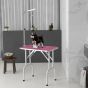 PAWSTER 32" Foldable Dog Grooming Table Pet Drying Beauty Table Adjustable Fixed Arm Rubber Top, Pink