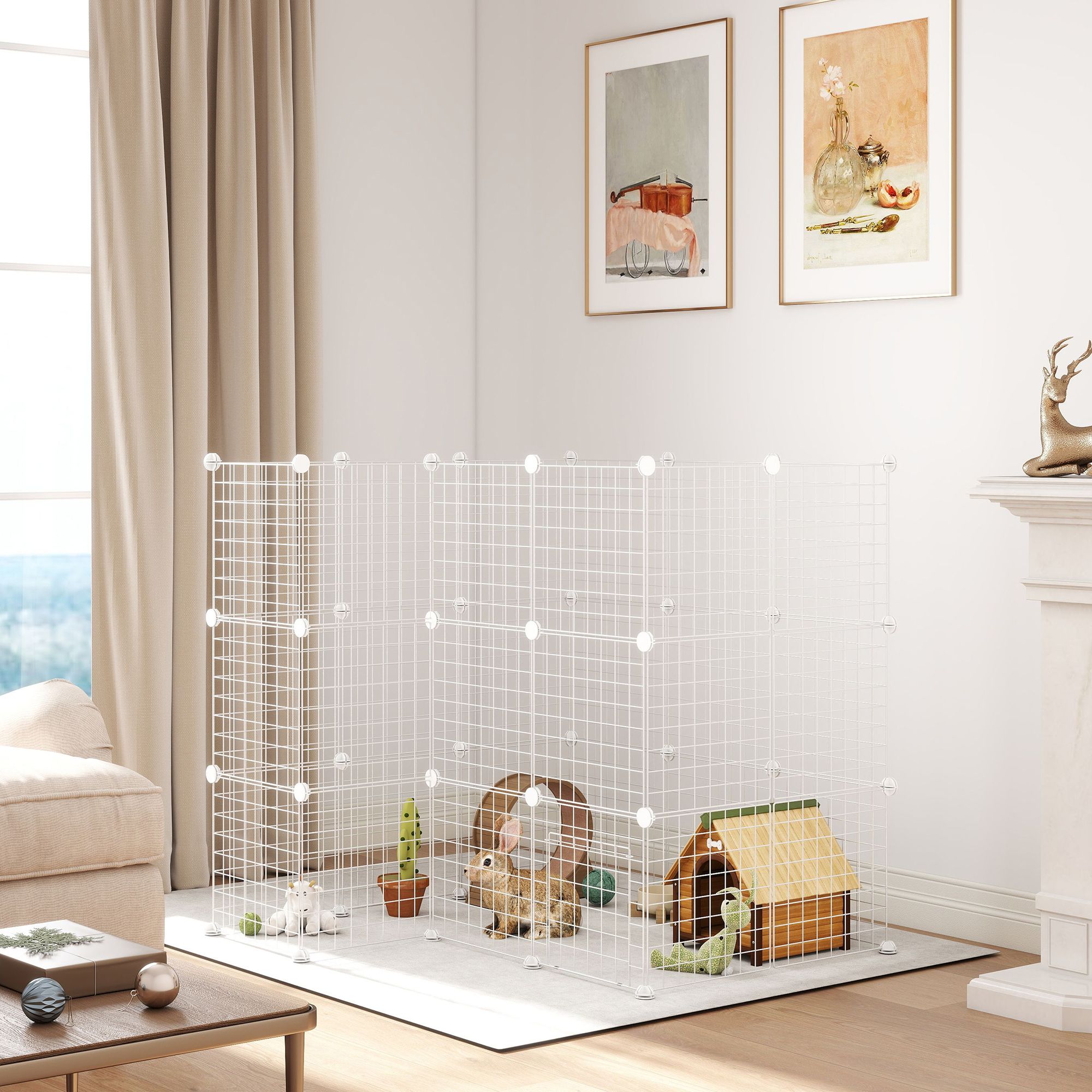 PAWSTER 36 Panel DIY Metal Pet Playpen Fence for Small Animals - White