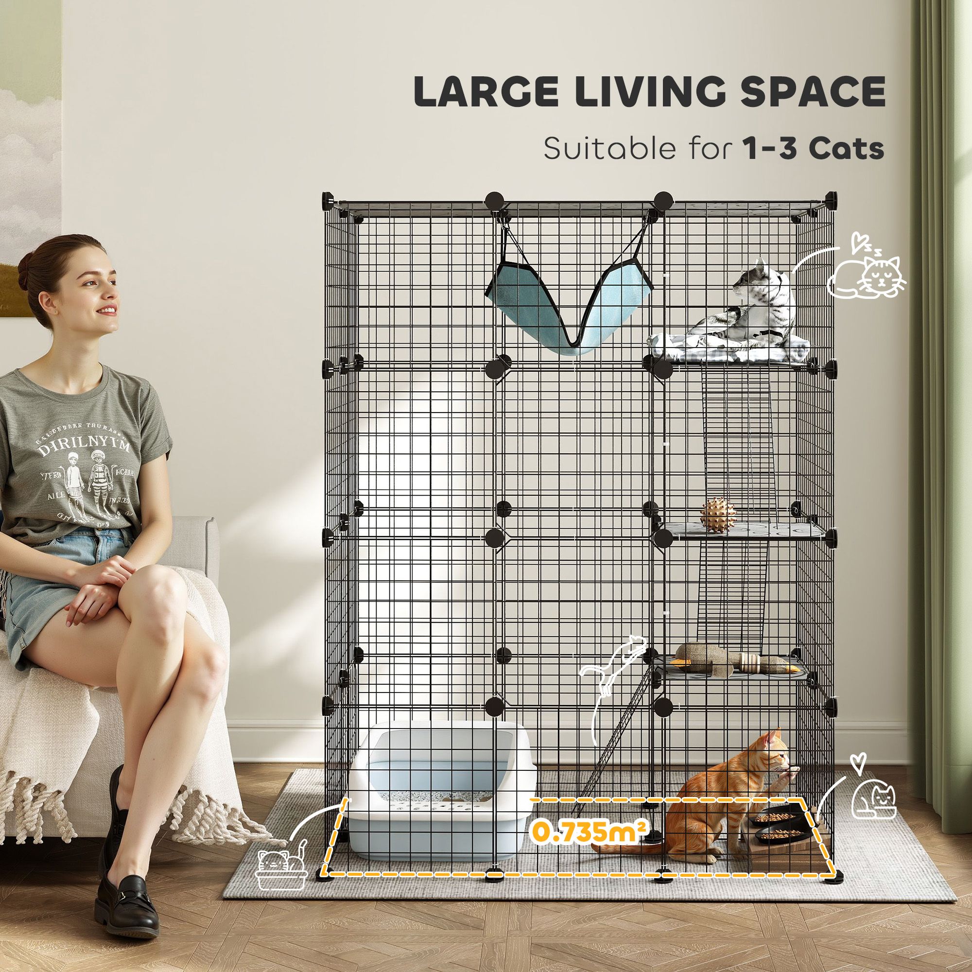 PAWSTER 4-Tier DIY Large Cat Cage with Hammock, Ramps, 5 Doors, Indoor Use for 1-3 Cats, Black