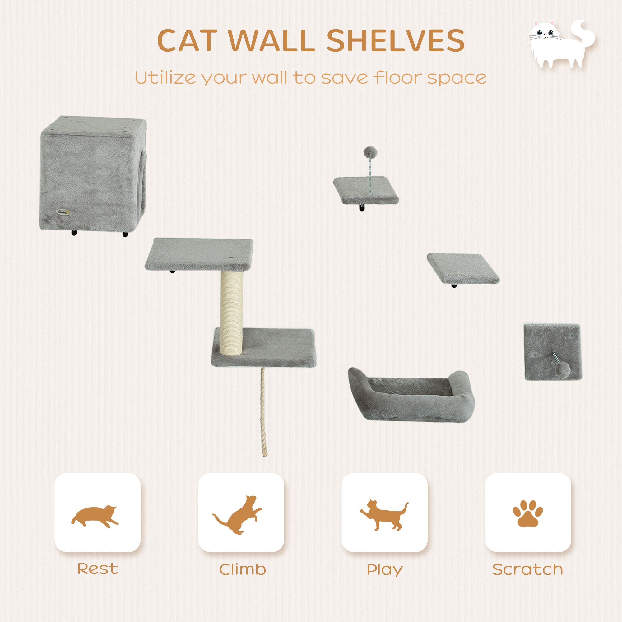 PAWSTER 6 Piece Cat Wall Shelves Set with Condo Grey