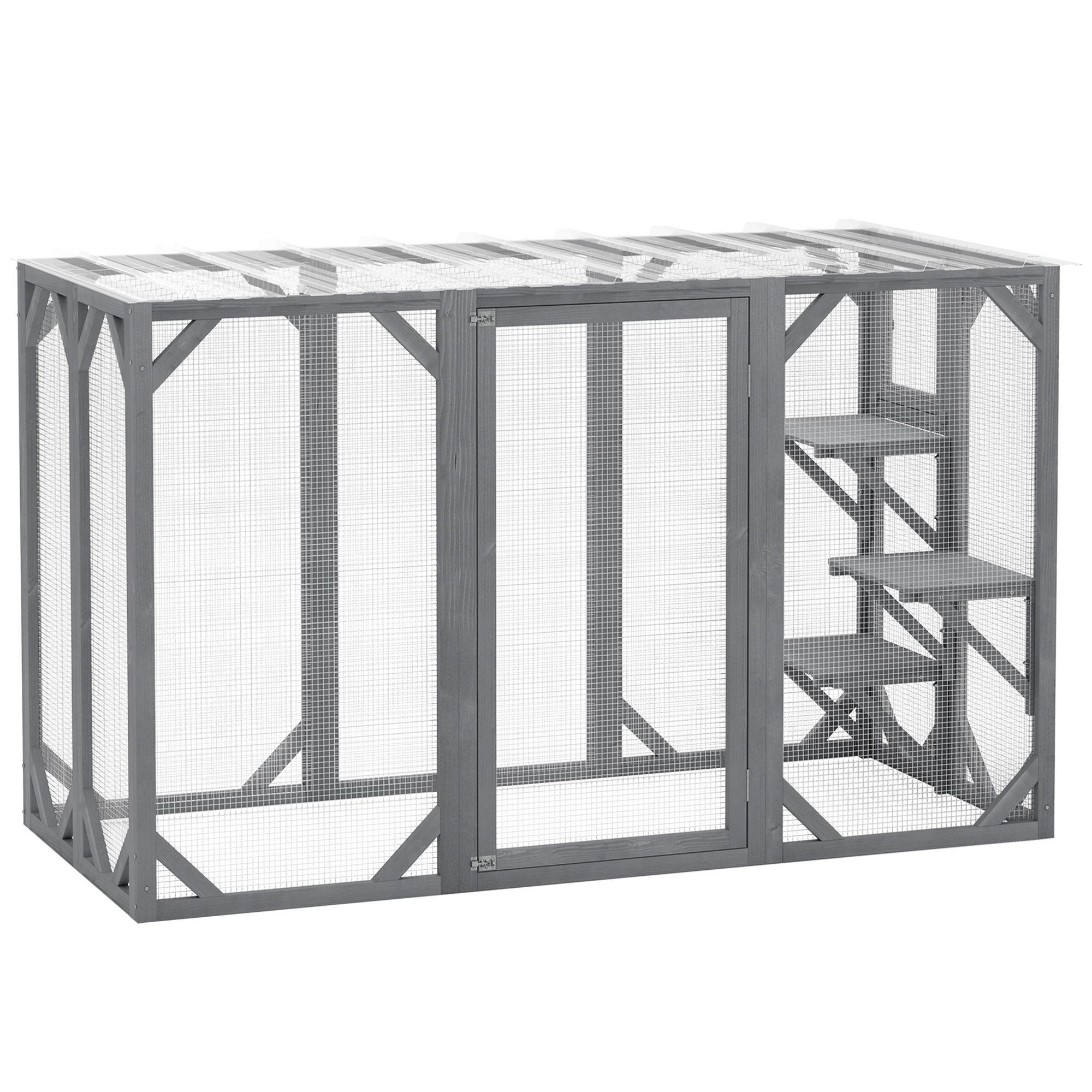 PAWSTER 71" Outdoor Wooden Cat House with 3 Platforms, Large Door and Weatherproof Roof, for Multiple Cats, Grey