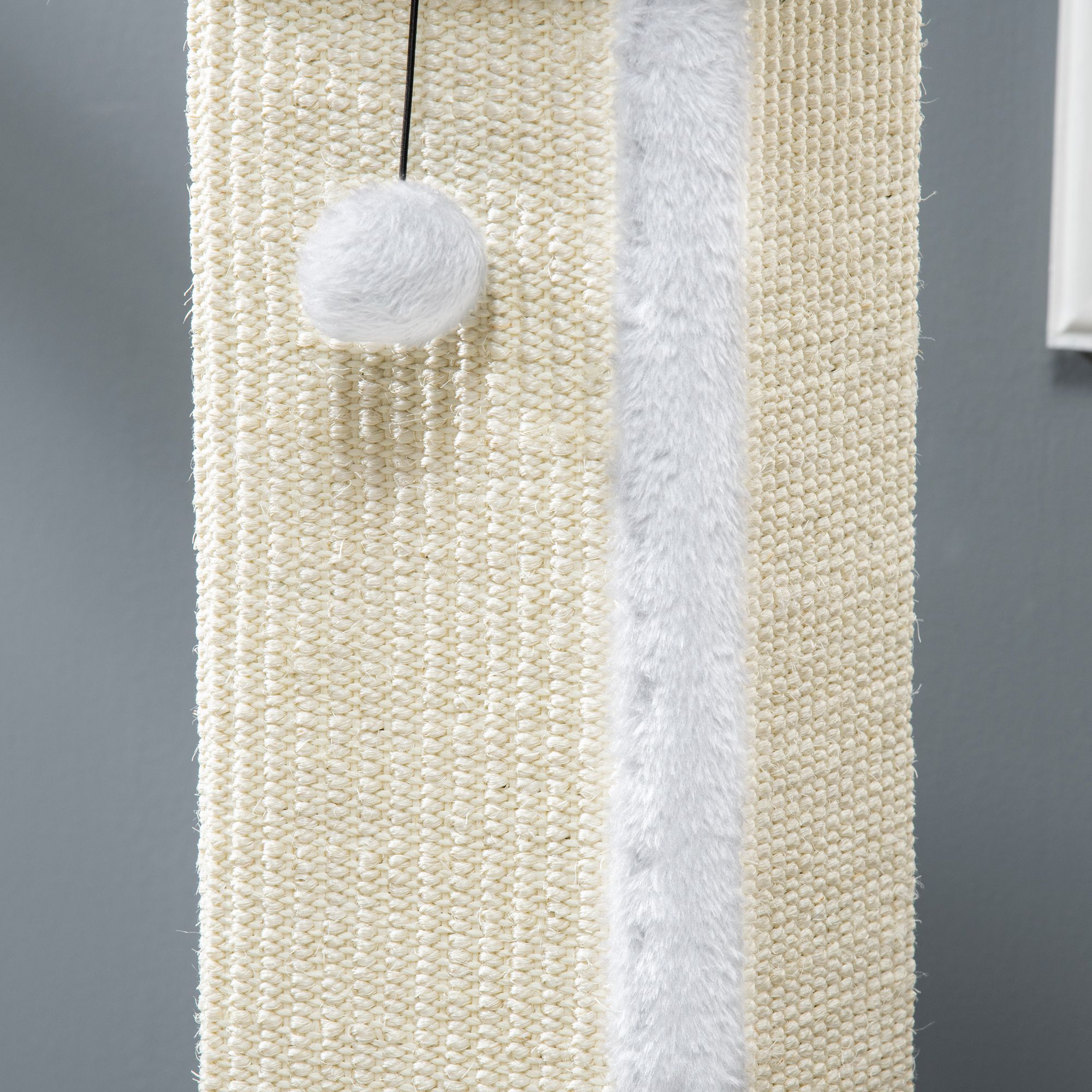 PAWSTER 81cm Cat Scratcher, Vertical Full Scratcher w/ Natural Sisal Rope, Hanging Ball, Soft Plush - White