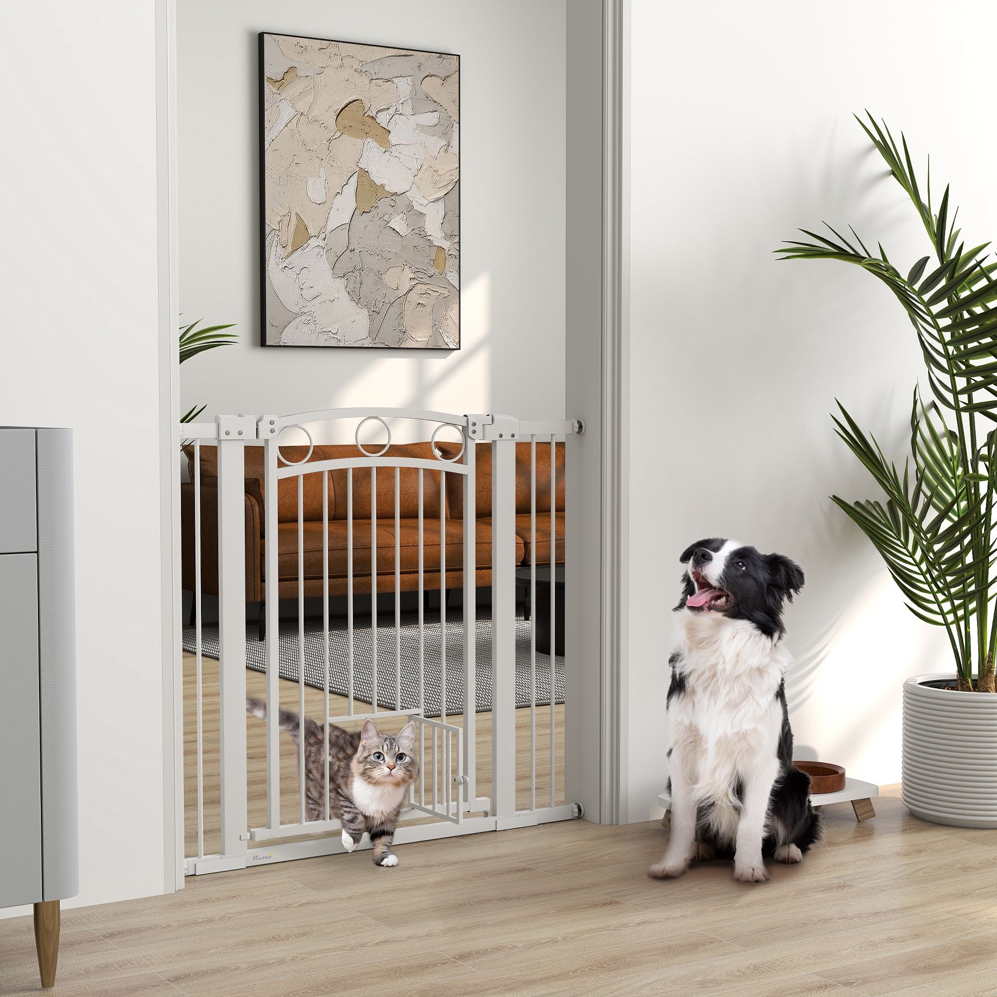 PAWSTER 96cm Tall Dog Gate with Cat Door, 7cm and 14cm Extensions, for Stairs, Doorways, 76-104cm Width