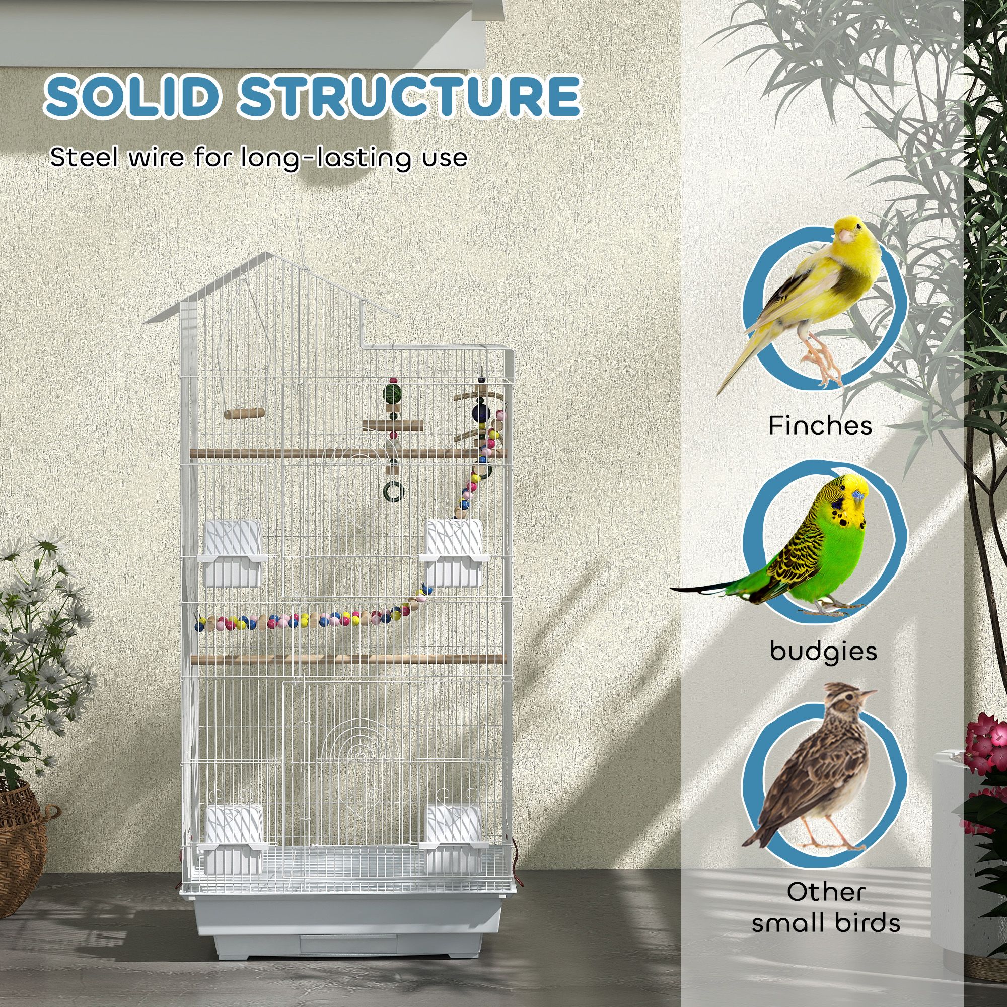 PAWSTER Bird Cage for Budgies, Finches, Canaries w/ Accessories, Toys, Tray, White