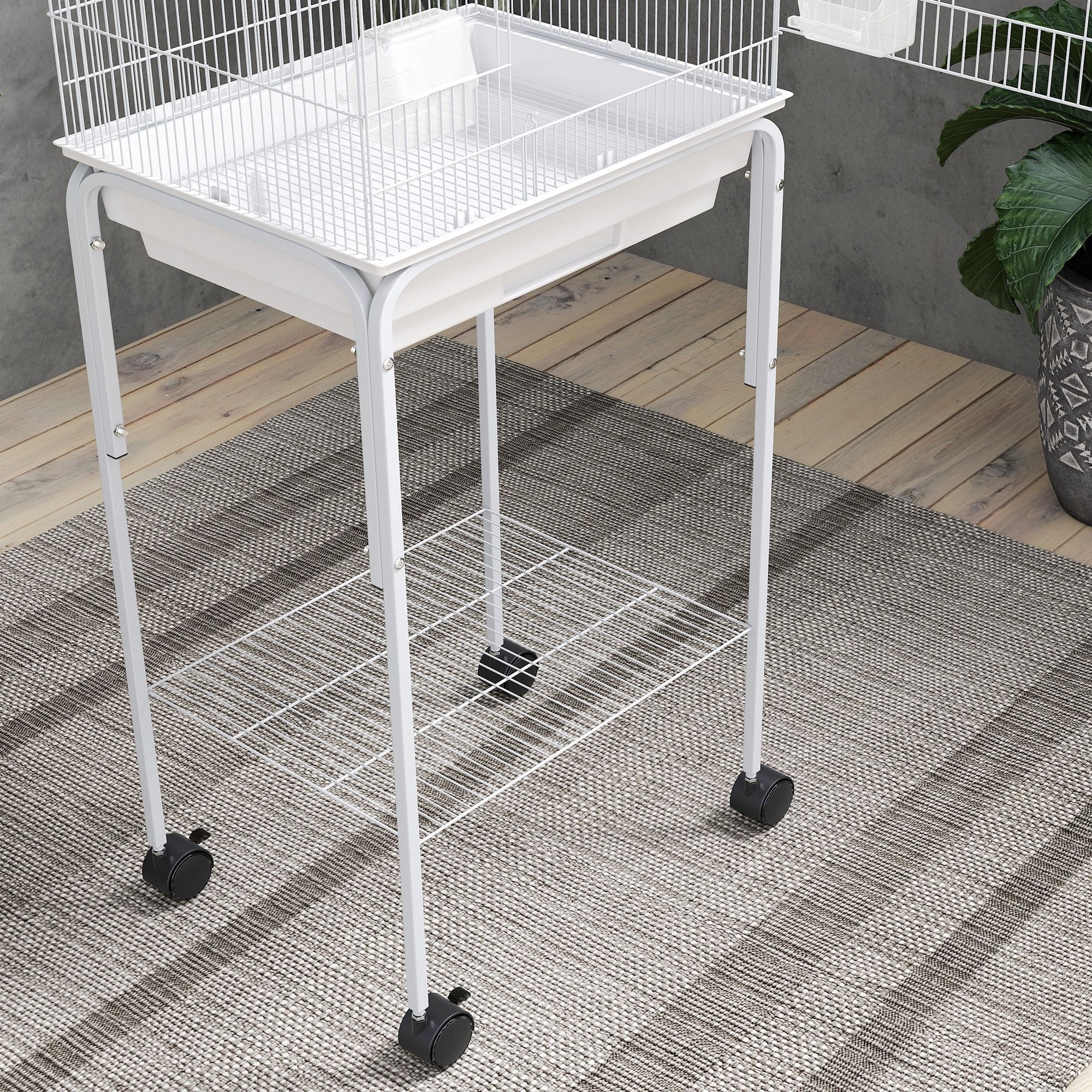 PAWSTER Bird Cage with Stand, Wheels, Tray & Storage Shelf for Finch Canary Parakeet - White