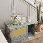 PAWSTER Boho Style Cat Litter Box Enclosure with Rattan Door, Scratching Mat, Toy Ball, Non-slip Foot Pads, 80 x 50 x 50cm, Grey