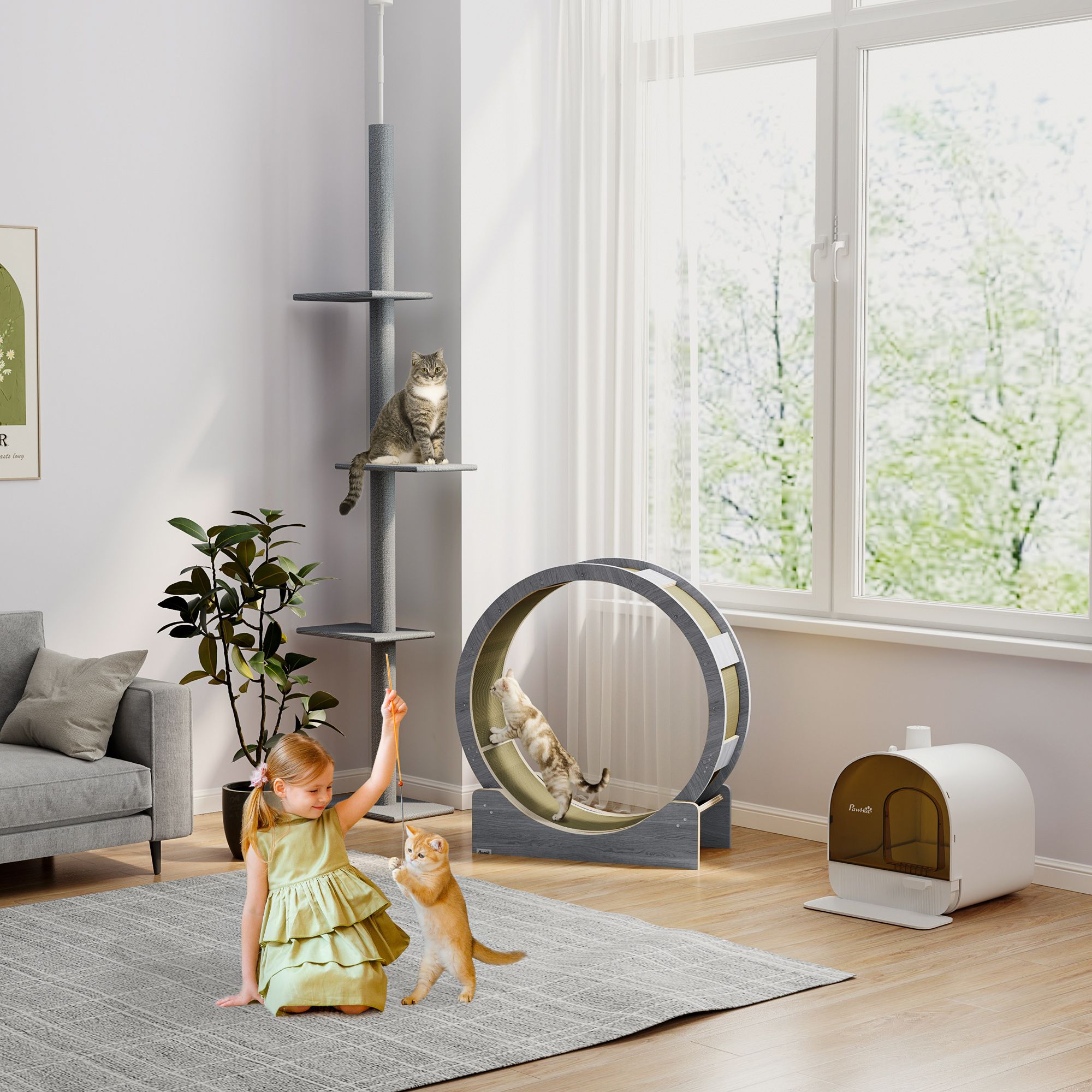 PAWSTER Cat Wheel with Brake, Scratching Pads - Grey
