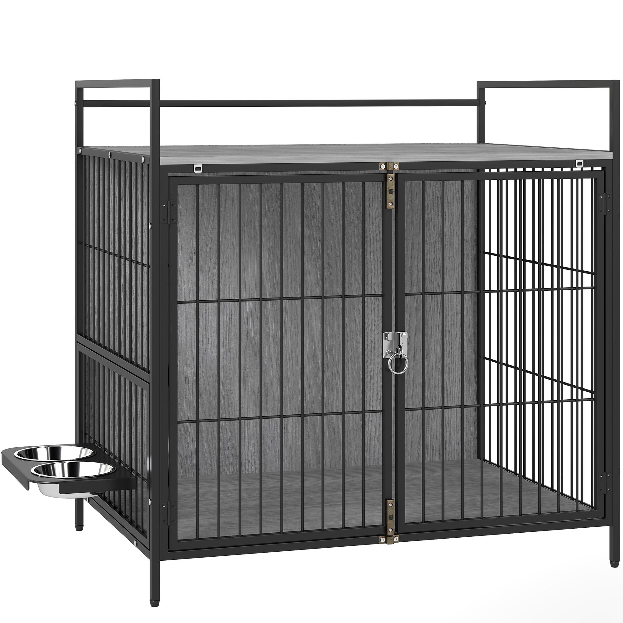 PAWSTER Dog Crate Furniture with Rotating Bowl Holder Grey