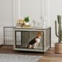 PAWSTER Dog Crate Furniture with Wheels, Double Doors, for Medium Dogs, 80 x 56 x 62.5cm, Grey