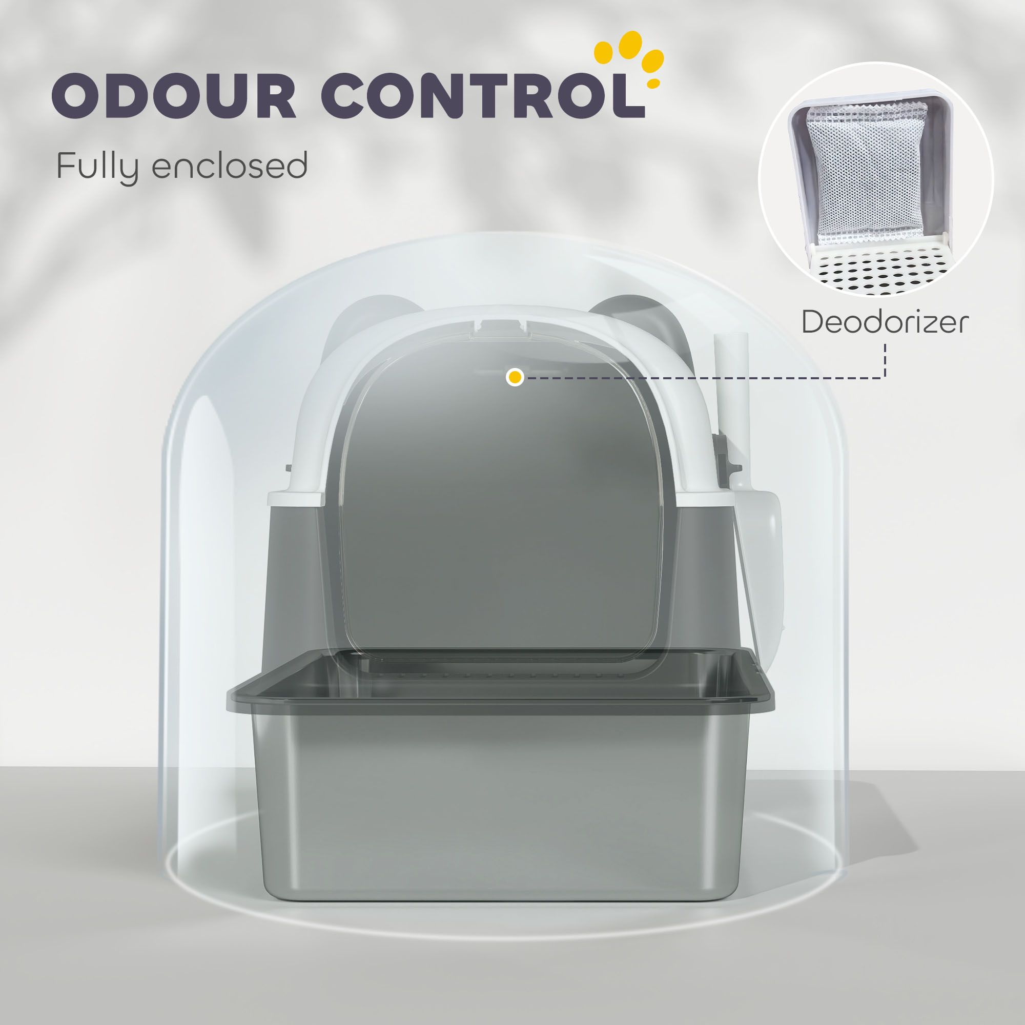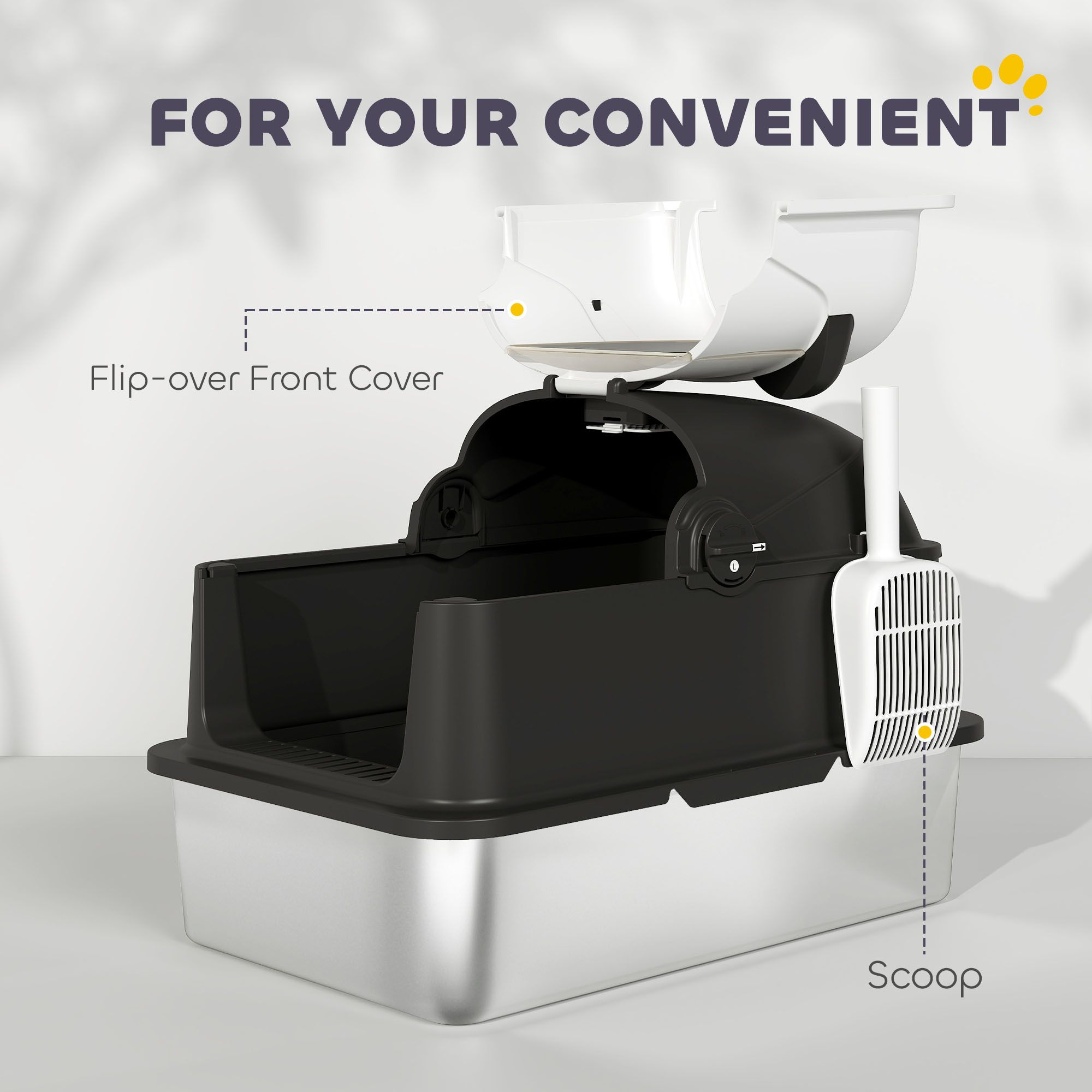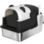 PAWSTER Panda Style XL Stainless Steel Cat Litter Box with Lid Enclosed - Black