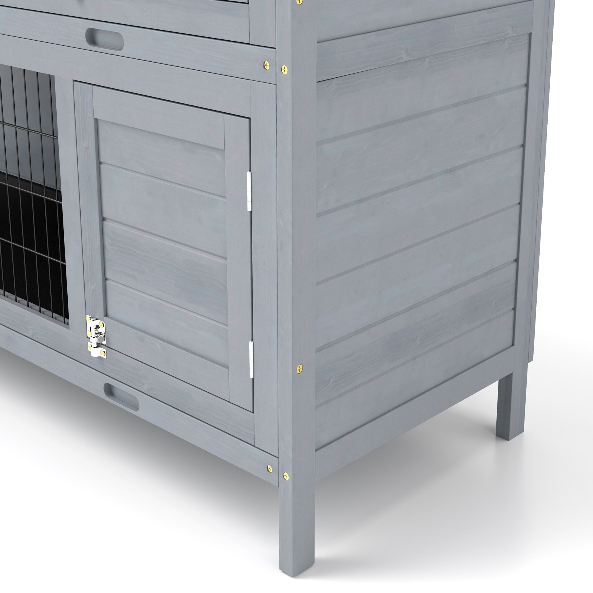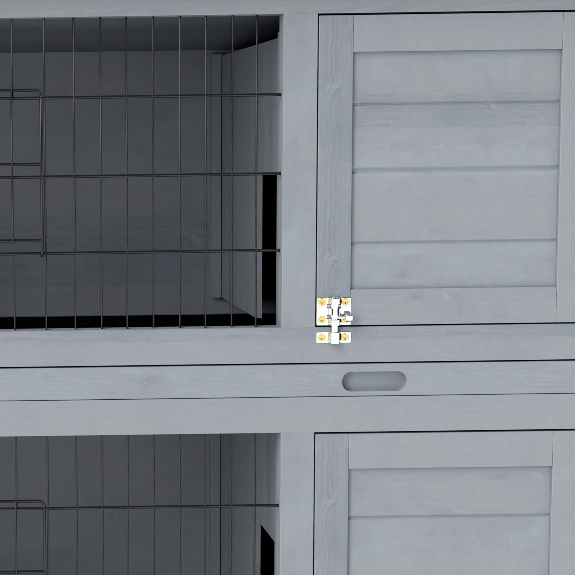 PAWSTER Rabbit Hutch Outdoor Guinea Pig Hutch Bunny Cage with No-Leak Trays, Divider, 136 x 50 x 93cm, Grey