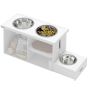 PAWSTER Raised Dog Bowls w/ Slow Feeder Mat, Storage Cabinet, 3 Stainless Steel Bowls, Semi-Auto Dispenser Function, White