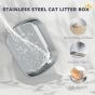 PAWSTER Stainless Steel Cat Litter Box with Lid Enclosed Flip Cover Scoop - White